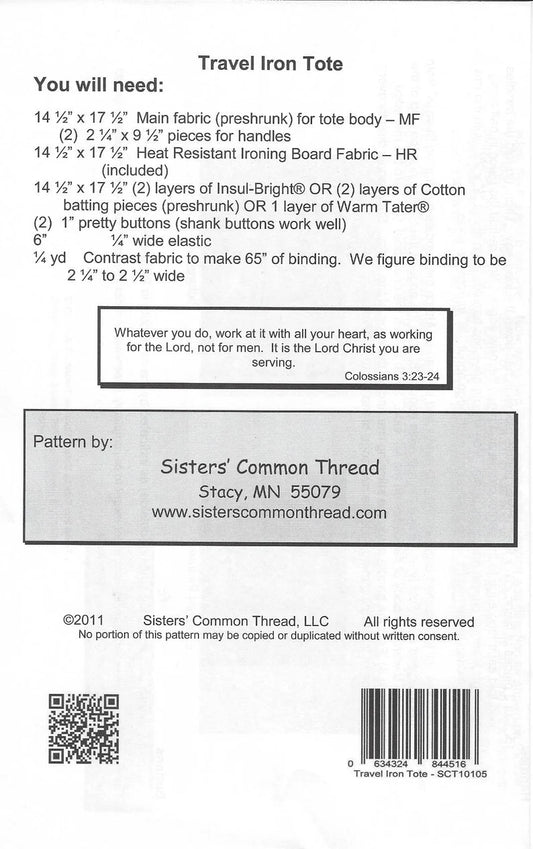 Travel Iron Tote Pattern SCT10105
