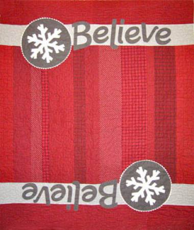 Simple strip quilt with applique accents. Quilt finishes at 54 by 66 inches.