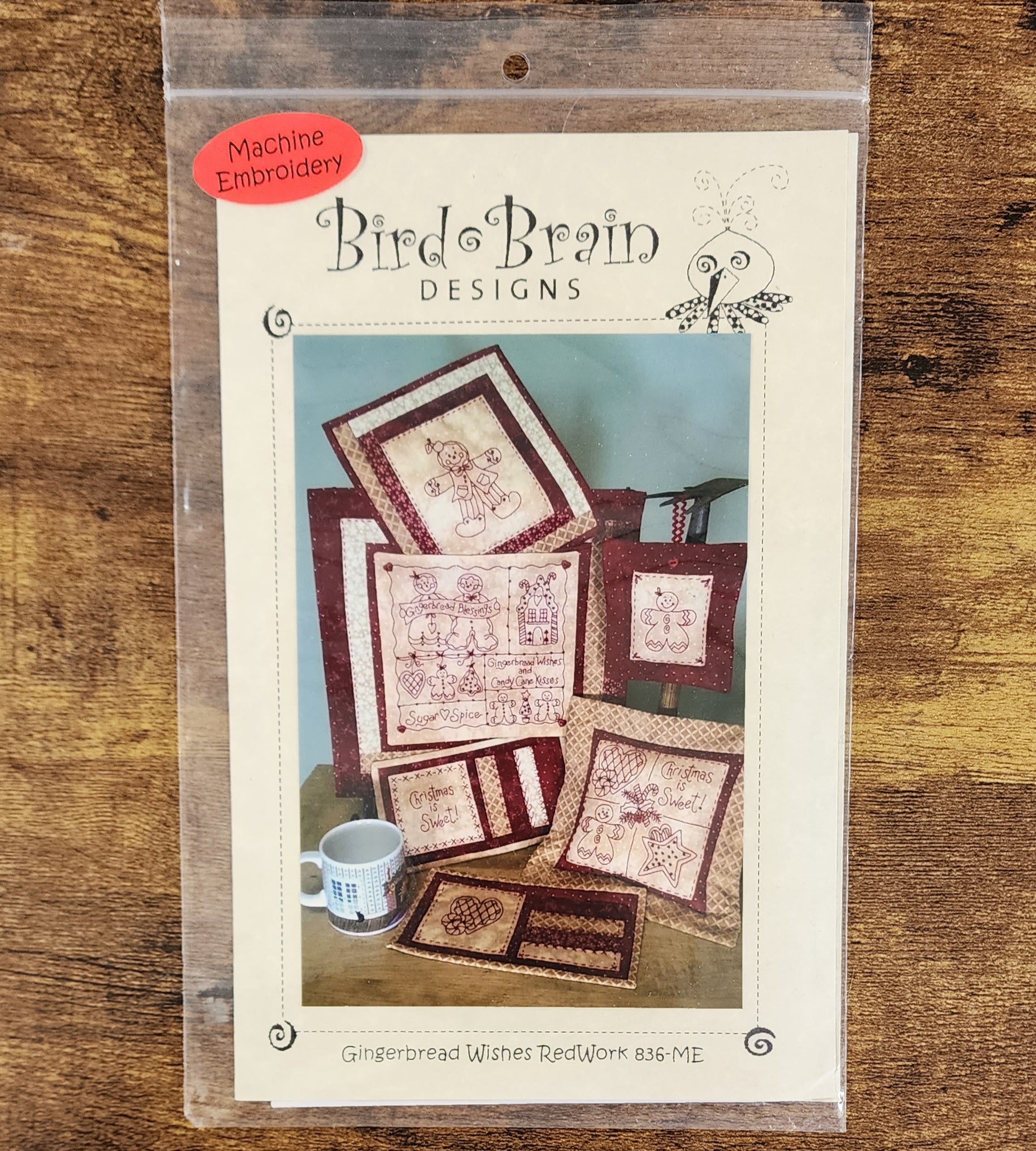 Bird Brain Designs Gingerbread Wishes Redwork 836-ME