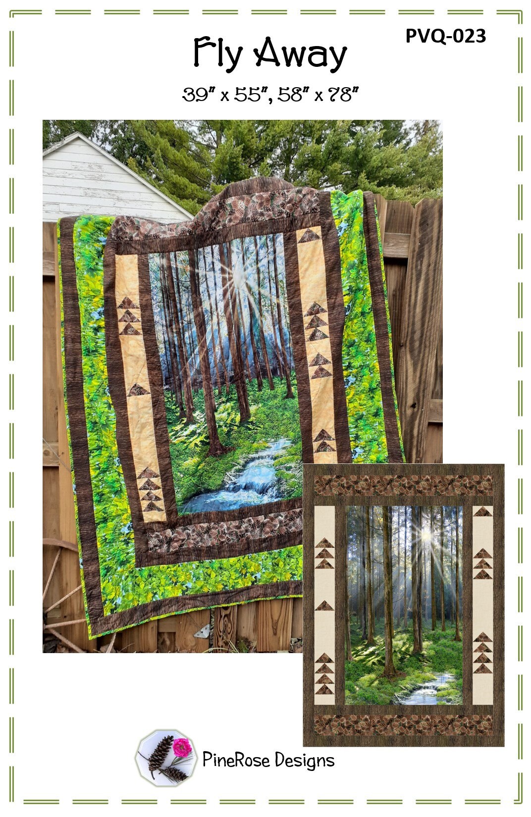 The geese are flying up and away in the two side borders. You could make more, or less, Flying Geese, make the geese and squares scrappy or make the geese all the same. Deb Tucker’s Wing Clipper® will help you with getting perfect points on the Flying Geese, or use the no-waste method. The length of the quilt will depend on the size of the panel