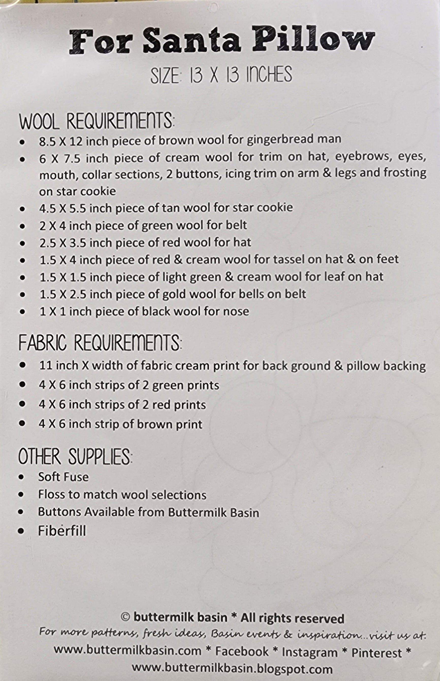 For Santa Pillow Pattern BMB3165