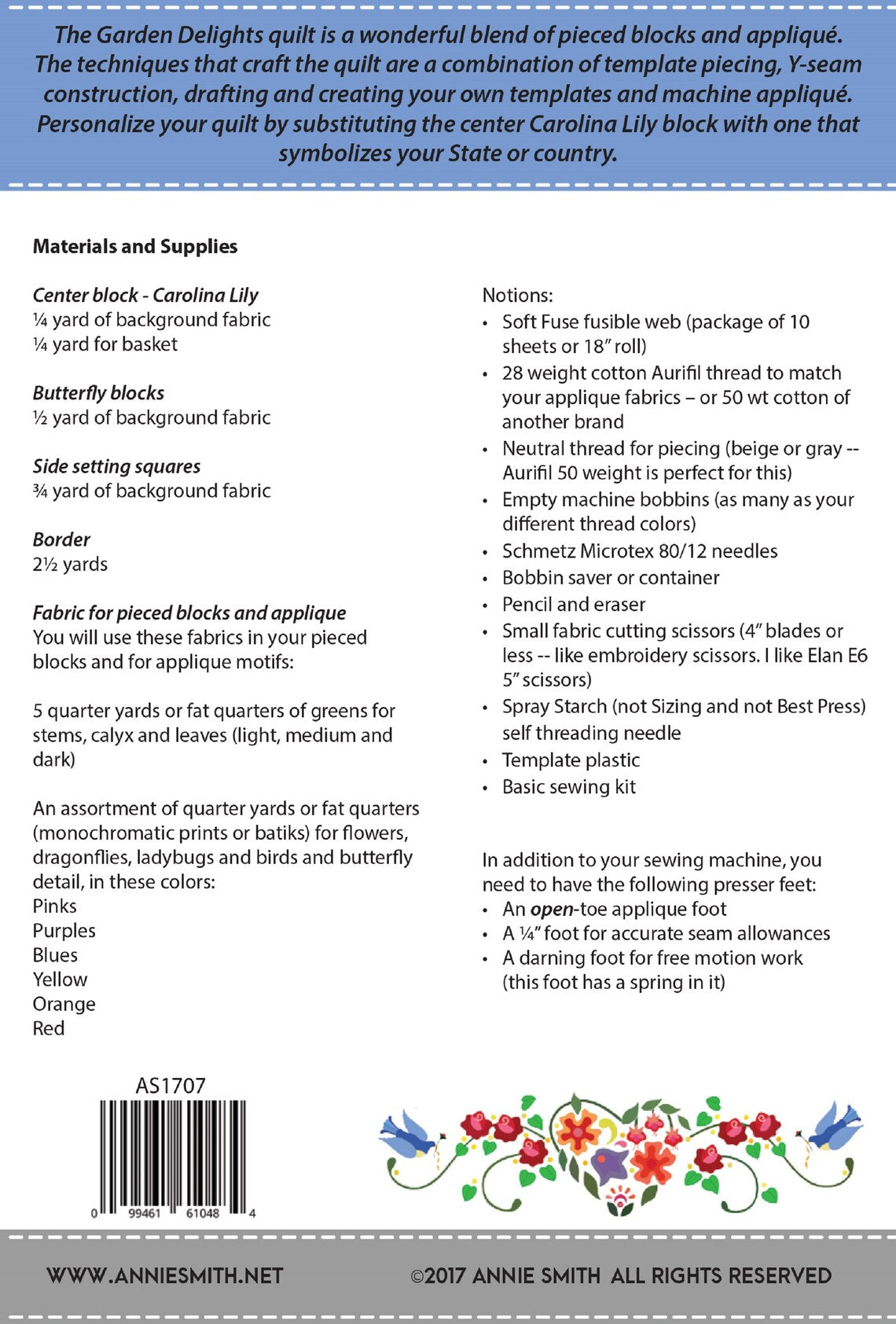 The Garden Delights quilt is a wonderful blend of pieced blocks and applique. The techniques that craft the quilt are a combination of template piecing, Y-seam construction, drafting and creating your own templates and machine applique. Personalize your quilt by substituting the center Carolina Lily block with one that symbolizes your state or country.