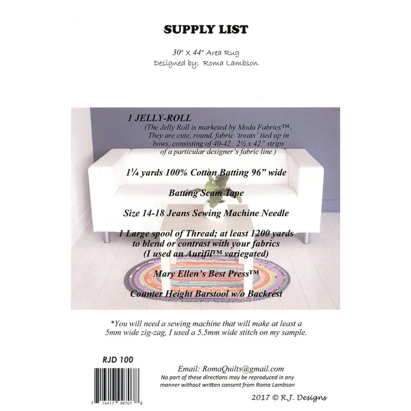 All it takes is one Jelly Roll, forty two 2.5" fabric strips, and 100% cotton batting to make this fun area rug.