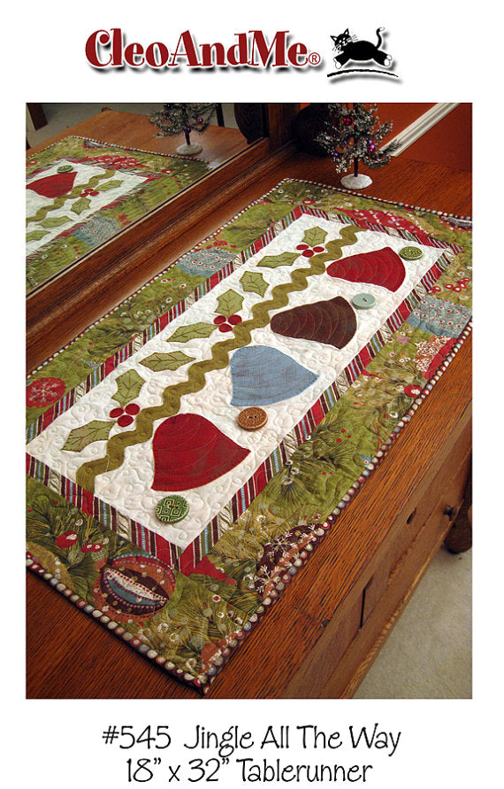 CleoAndMe Patterns. Easy piecing and fusible applique with a touch of rick rack and button embellishments, this runner is fast and fun to make! Finished size is 18" x 32".
