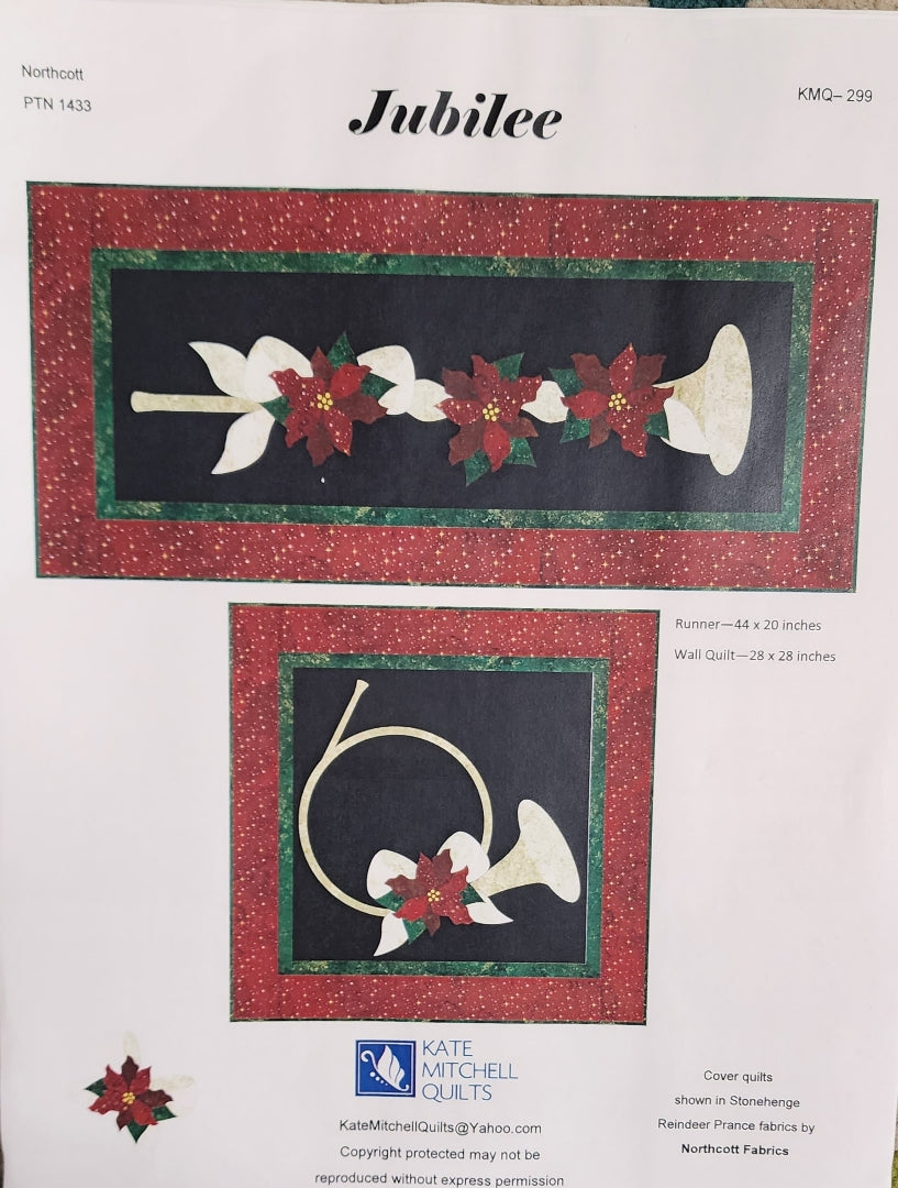 Pattern to make a table and coordinating wall quilt. Table runner finishes at 44 by 20 inches and the wall hanging is 28 inches square.