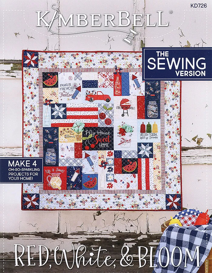 Red White & Bloom Sewing Version Project Booklet is a delightful hodgepodge of fun American summer memories. From fireflies in mason jars to lemonade and an open grill, this quilt has everything you need to piece together your own mosaic.