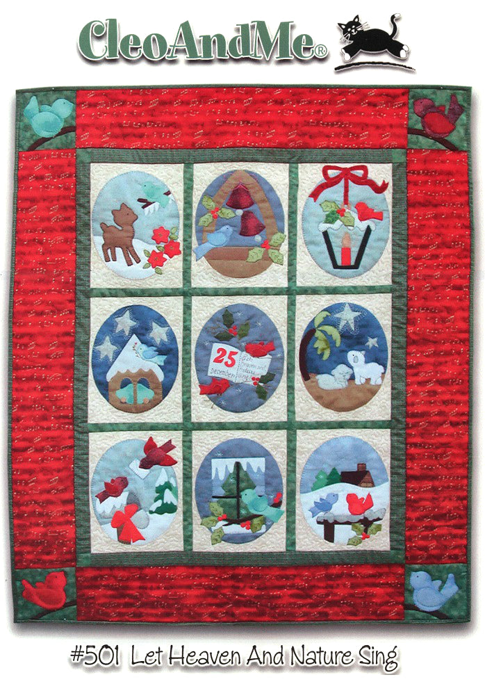 CleoandMe Patterns. Pieced and fusible applique wall quilt celebrates the quiet joys of the season. Finished size is 42" x 51".