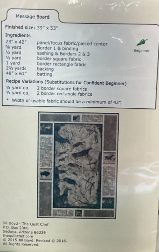 Great Pattern that begins with a Panel and you add coordinates. It uses a 23" panel or focus fabric. It finishes 39" x 53" which can be a baby quilt or a wall hanging/table topper. It also has a variation to add additional borders to the add an extra zing. The pattern is designed by Jill Boyd The Quilt Chef.