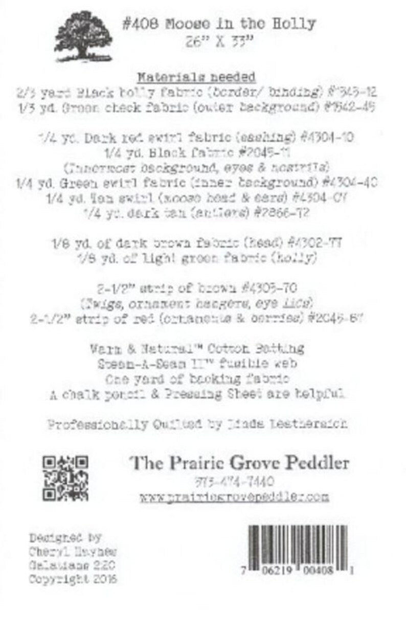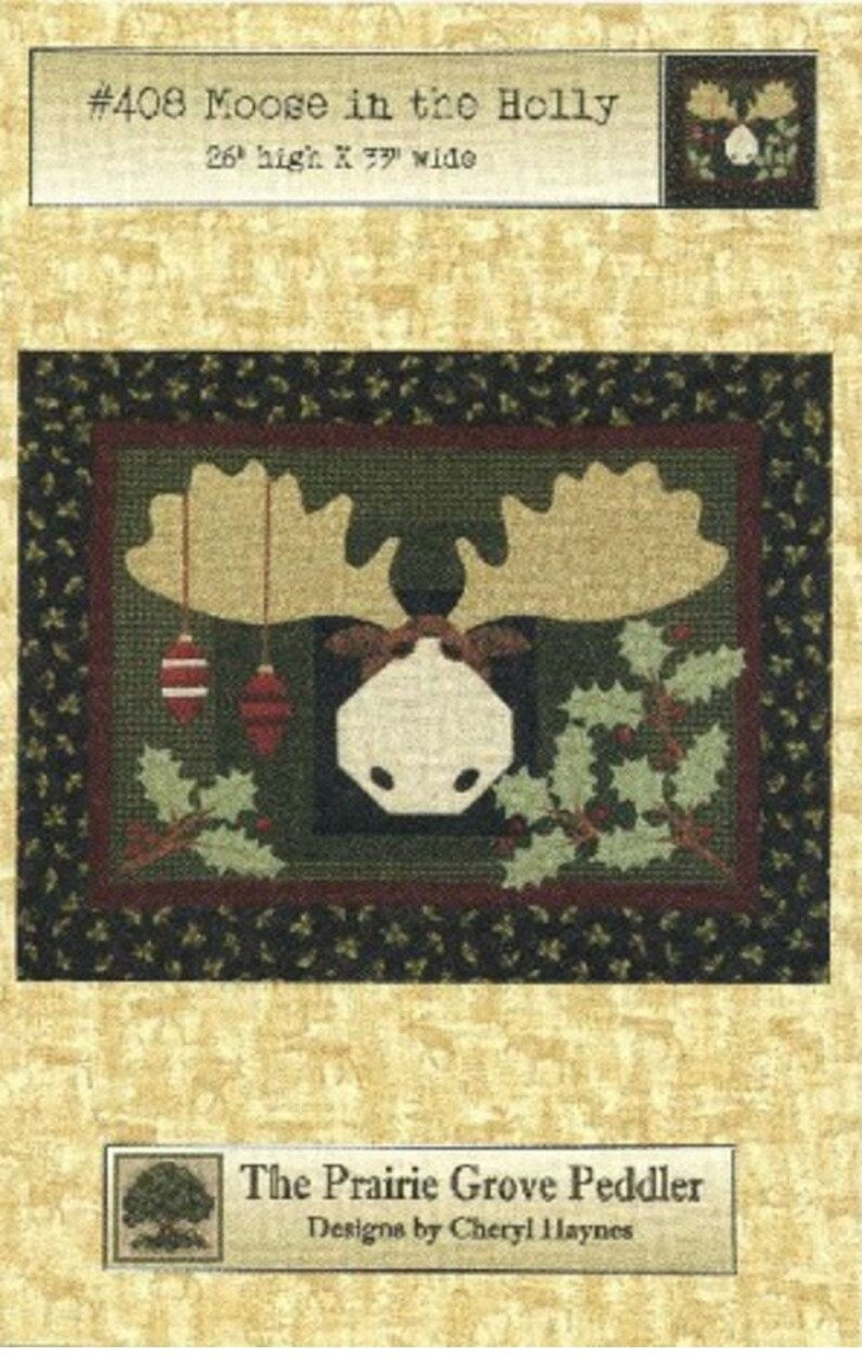 Moose in the Holly Wall Hanging Quilt Sewing Pattern by The Prairie Grove Peddler, Christmas Size 26" x 33"