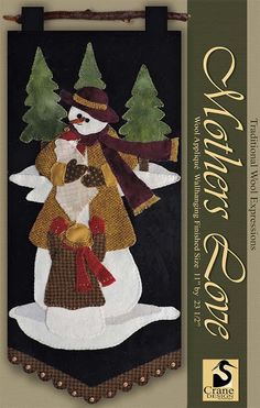 Snow person applique with child wall hanging.