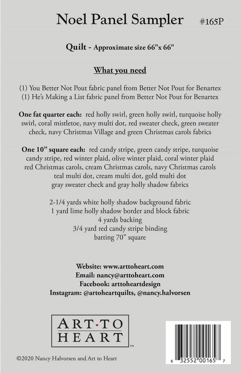 Enjoy the new pre-cuts quilt pattern “Noel Panel Sampler” using printed panels from the Better Not Pout Christmas line. The panels mean the layout is more simple but stunning. The quilt uses one each of two Better Not Pout fabric panels and measures 66” square.