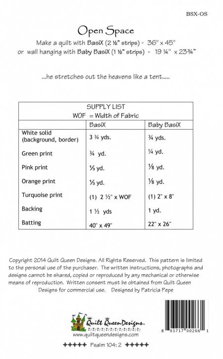 Kit includes pattern and fabrics to make the wallhanging top and binding. Batting and backing not included