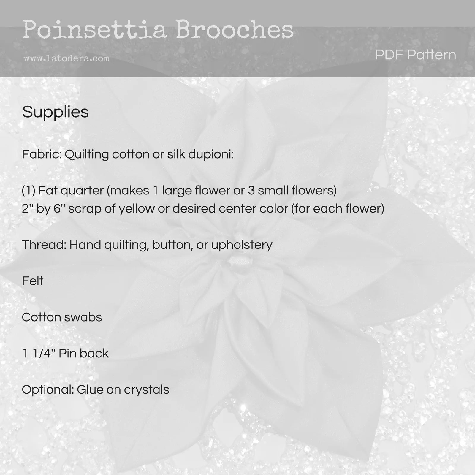 - La Todera Poinsettia Brooch Pattern- You may want to make these flowers by the dozen not just for yourself, but they'll make great gifts for friends and family alike