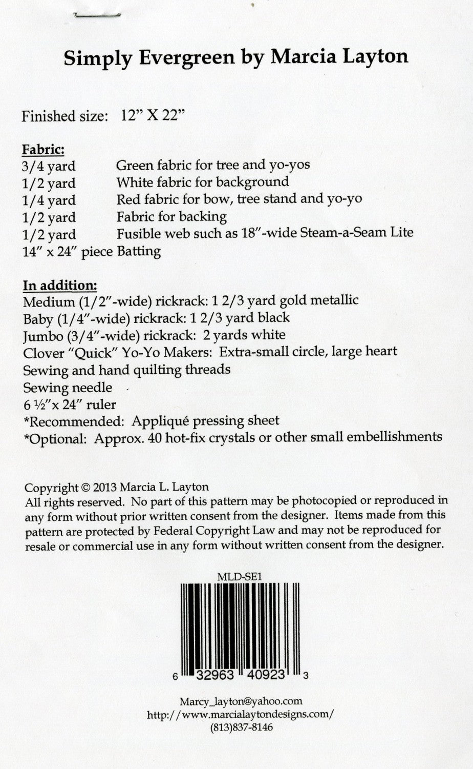 Simply Evergreen by Marcia Layton Designs Finished size 12" x 22"