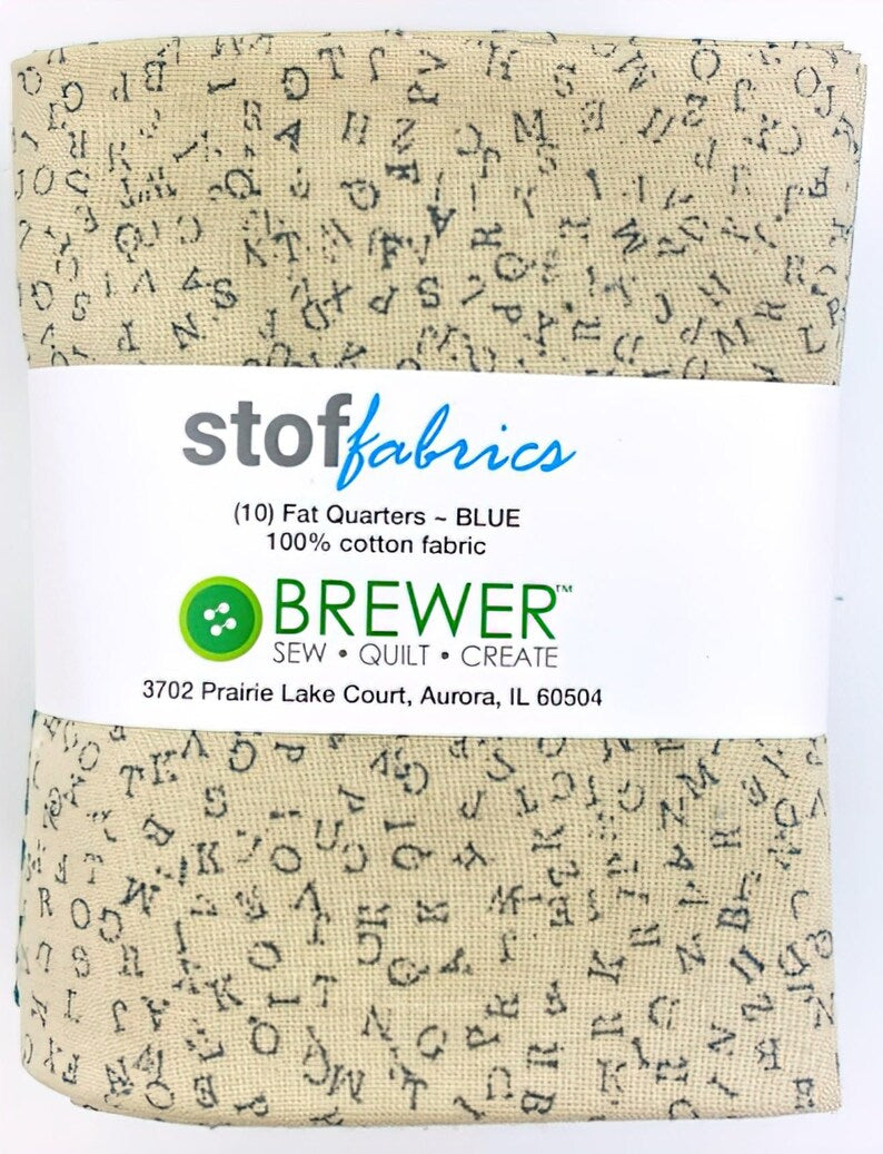 Stof Fabrics Quilter's Coordinates Bundle contains 10 FAT QUARTERS of assorted blue prints. Quilters Coordinates by Stof are 100% Cotton-Oeko-tex certified fabrics. Pre-cut.