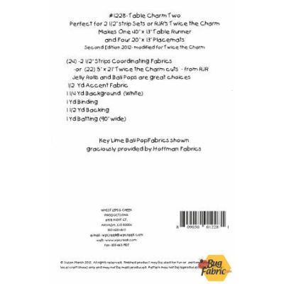 Perfect for 2 1/2" strip sets, makes one 40 by 13 table runner and four 20 by 13 placemats.