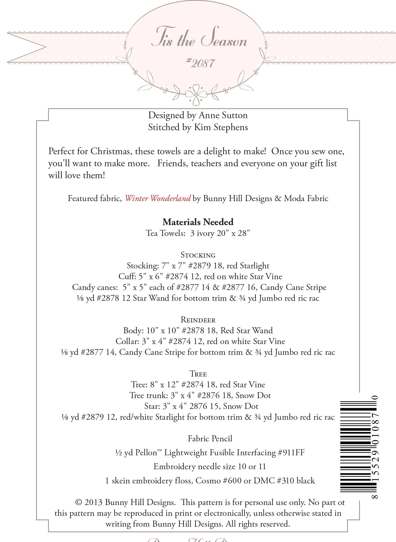 "Tis the Season" for holiday towels! 3 applique towels that are easy and a delight to make. Pick your favorite tea towel and decorate away! Great to use for a Christmas Holiday or Winter project.