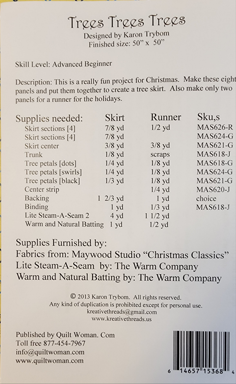 This is a really fun project for Christmas. Make these eight panels and put them together to create a tree skirt or you could make two panels for a runner instead.