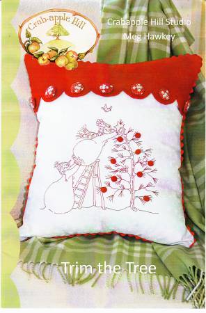 What could be cuter than two snowmen on a ladder? Two snowmen on a ladder trimming a Christmas tree! Especially when that tree is decorated with pom pom ornaments and a twinkling Cosmo “Sparkles” floss star! Fabric covered buttons and a felted wool scalloped pillow top just add to the “adorable” factor! Pillow pattern; finished size is 17" x 19-1/2".